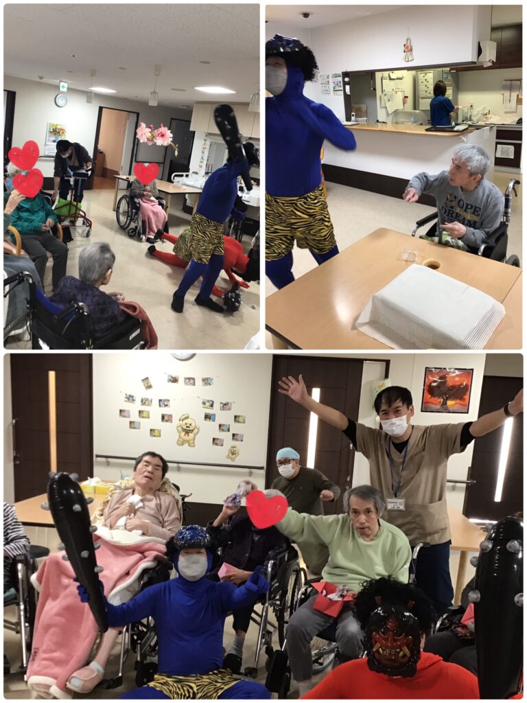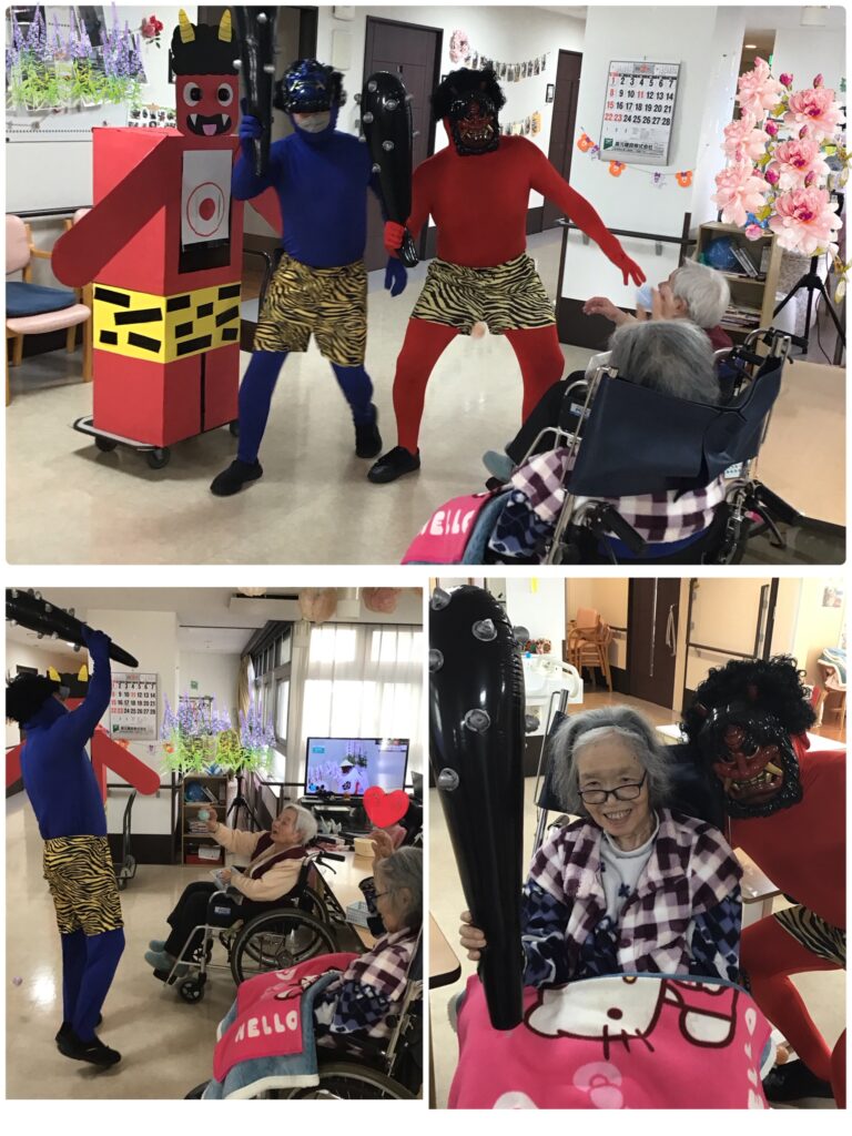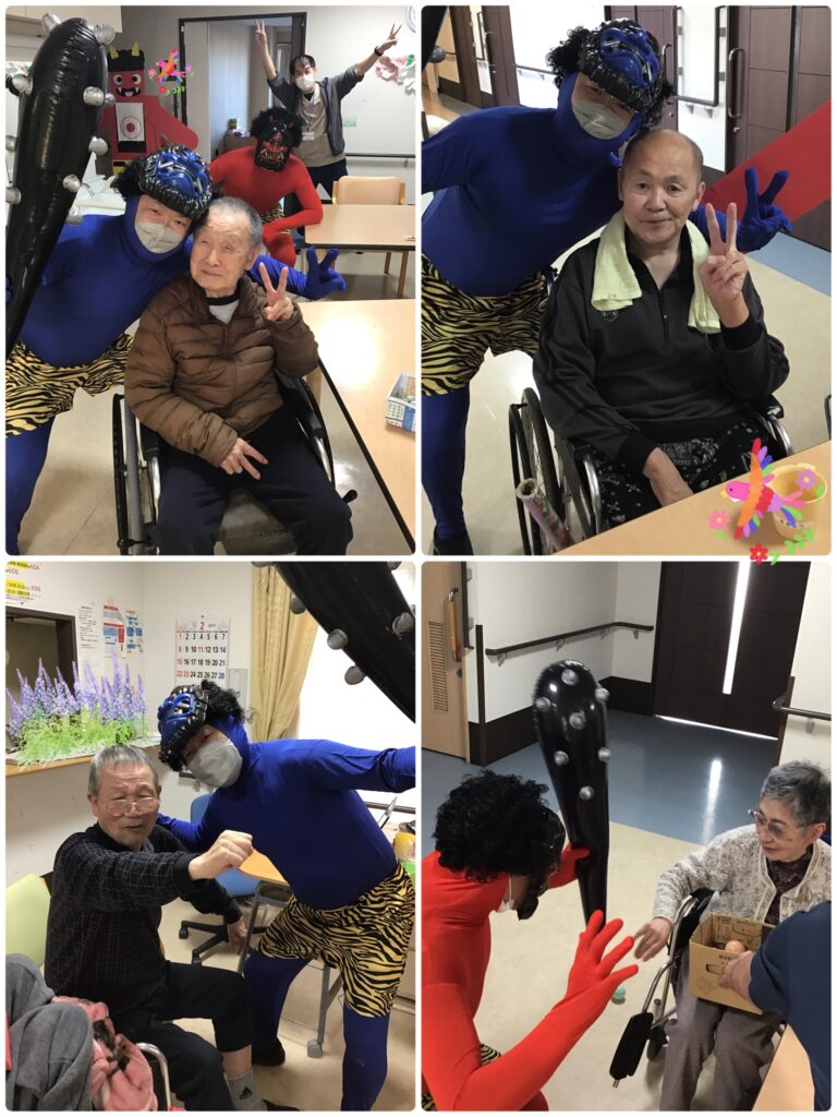 節分の日に青鬼と赤鬼がユニットに現れました。